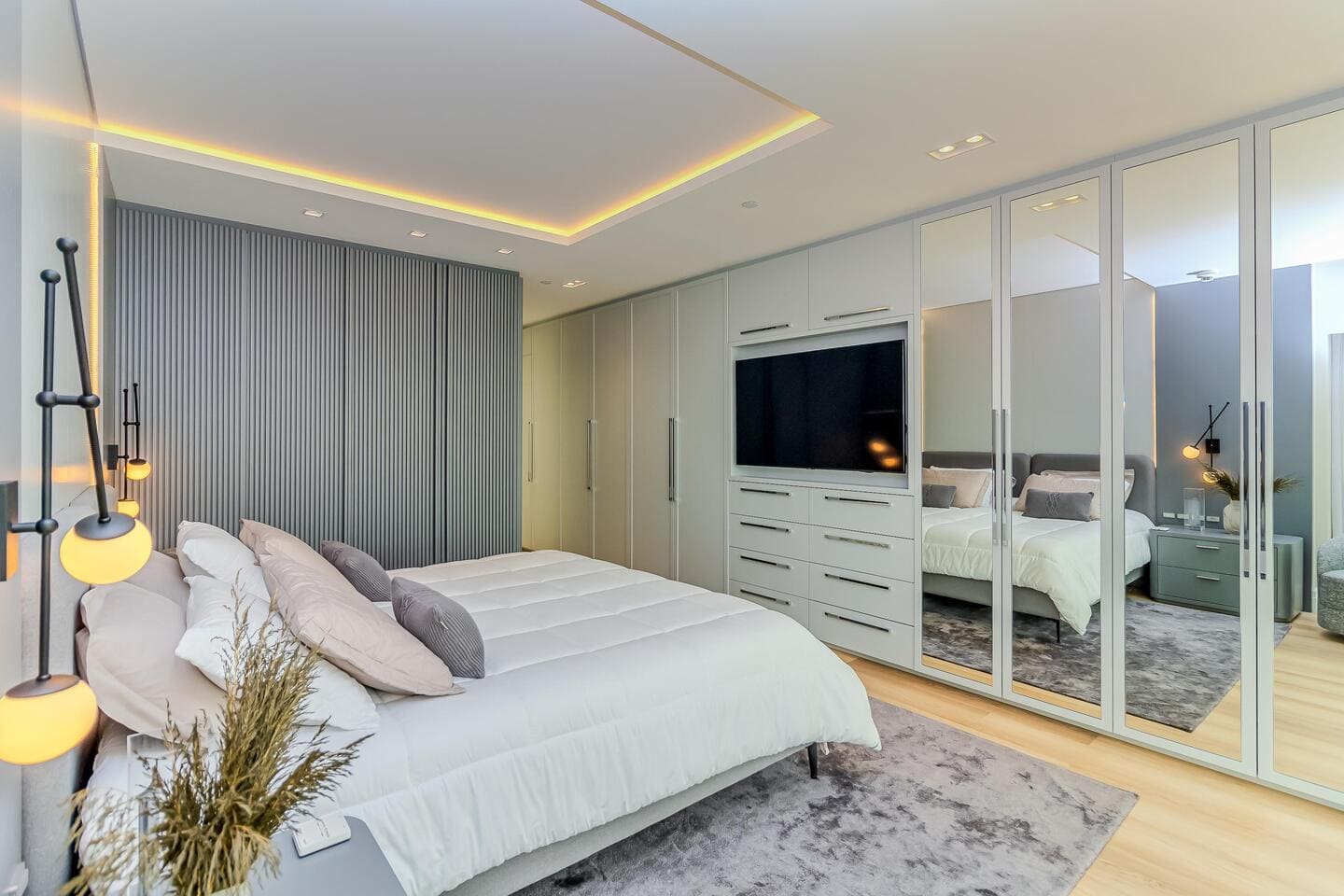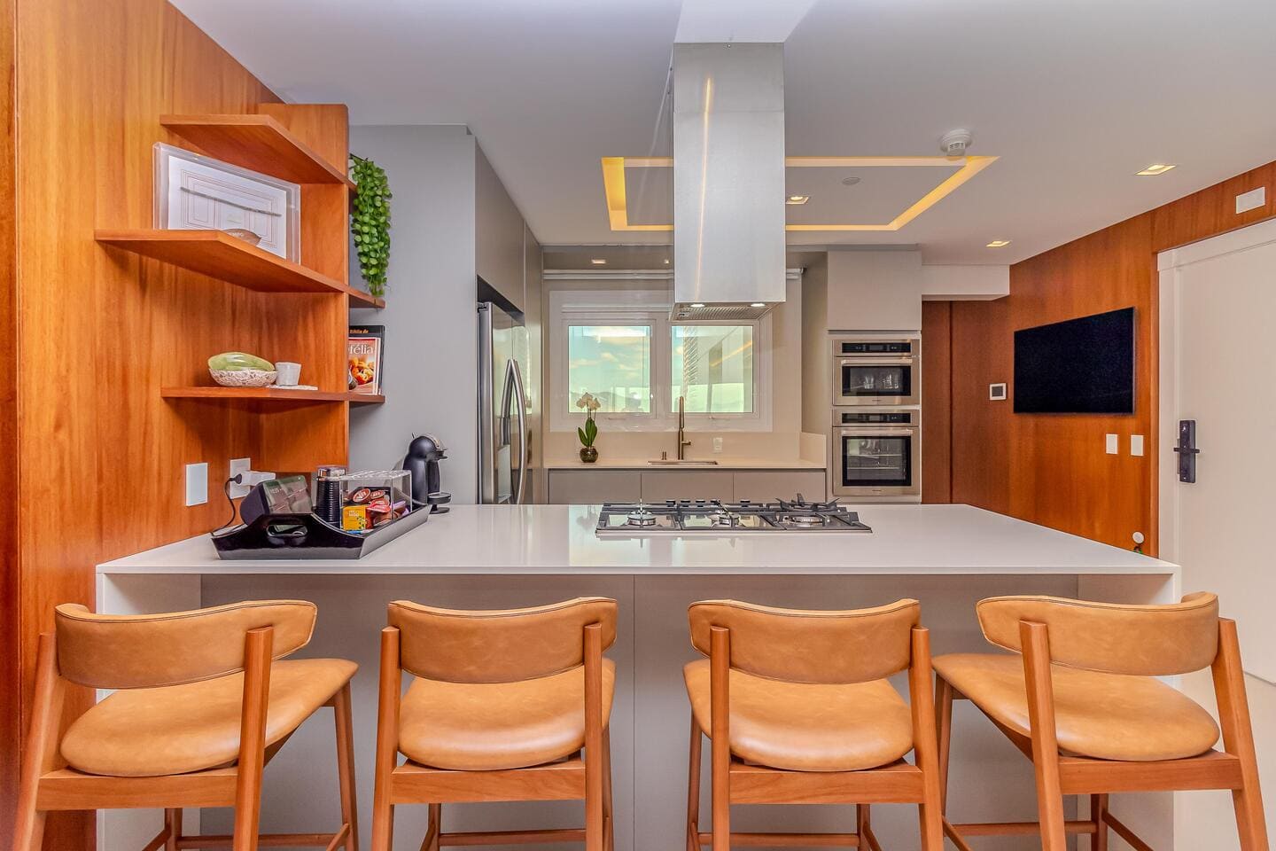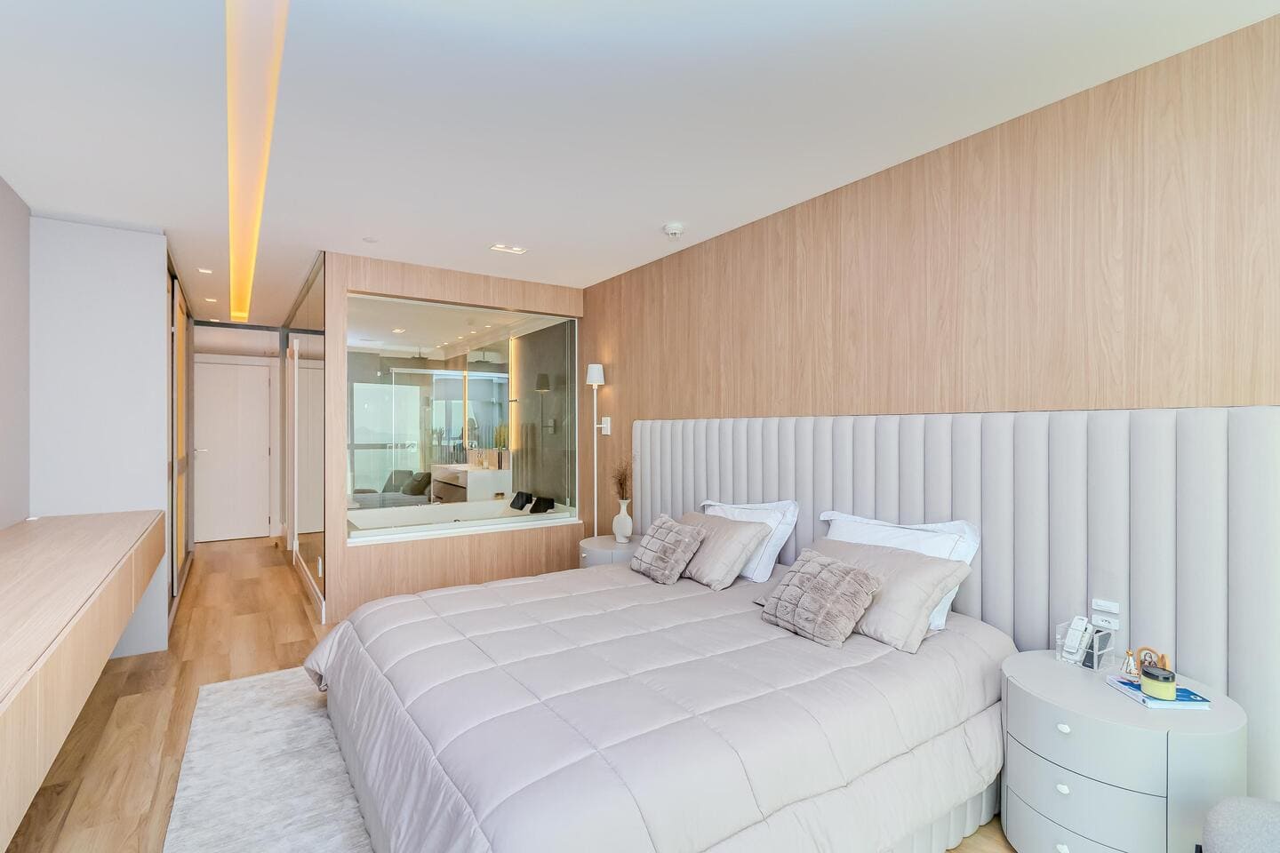 O Apartamento Mobiliado no Edifício One Tower, em Balneário Camboriú, traduz a maturidade de um projeto que alia tecnologia residencial, design contemporâneo e localização privilegiada. Com ambientes integrados e vista panorâmica do Atlântico, o living central conecta-se à cozinha gourmet e à área social, favorecendo fluidez e convivência. As quatro suítes foram desenhadas para o conforto absoluto, com destaque para as duas frente mar, equipadas com banheira de hidromassagem e amplas aberturas de vidro.