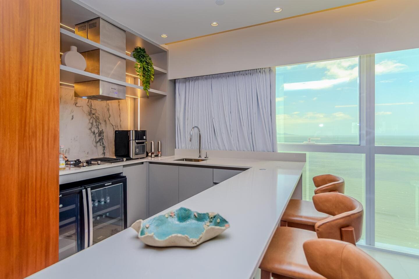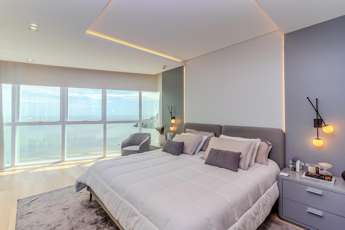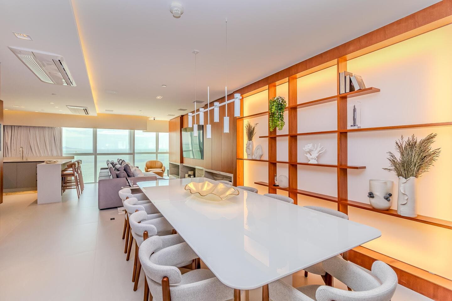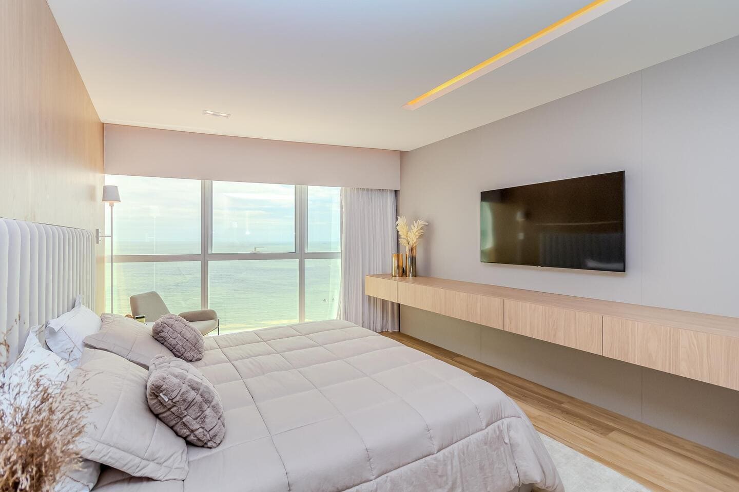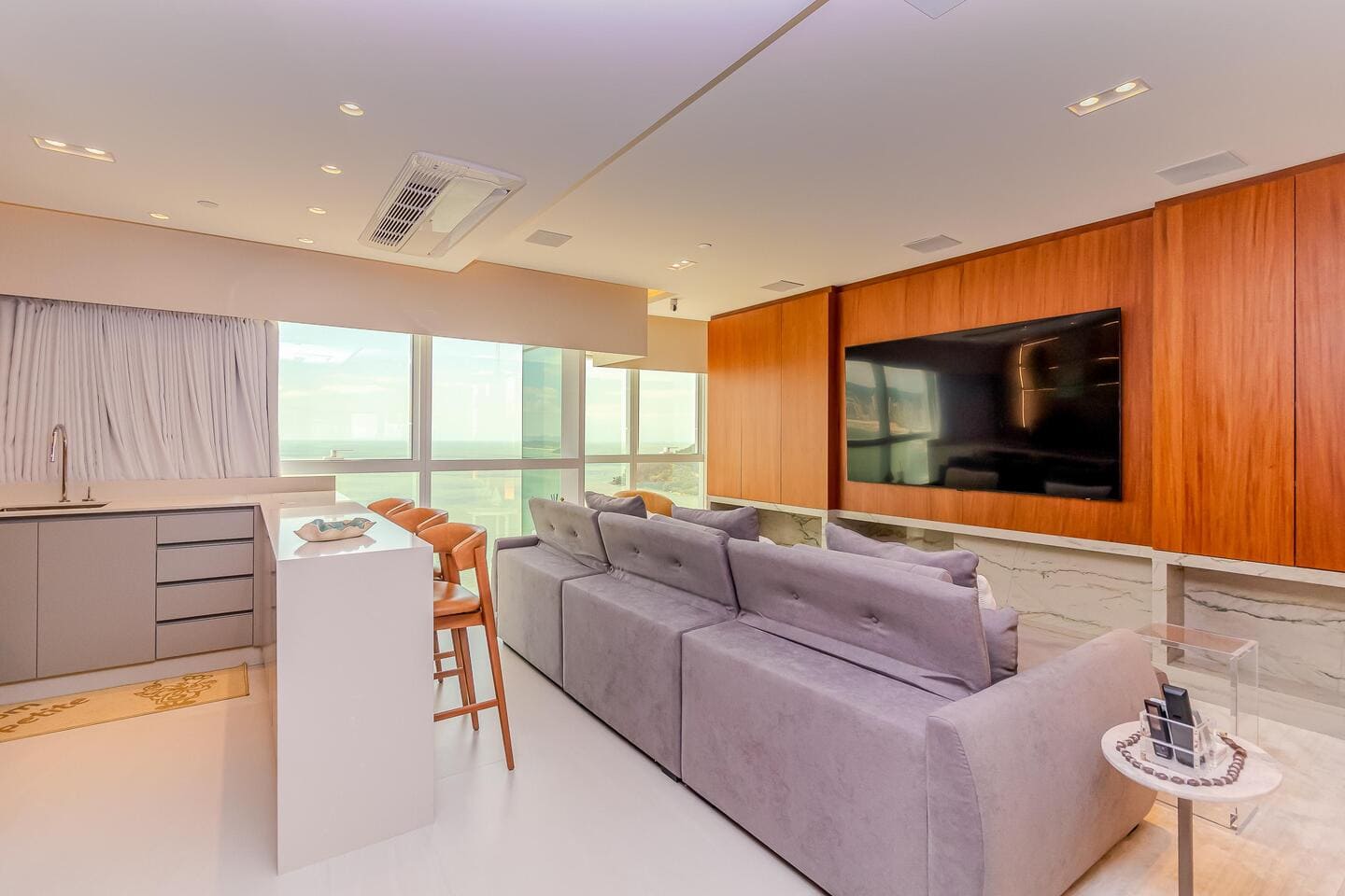 Este apartamento mobiliado no Edifício One Tower representa o encontro entre exclusividade e vida frente mar. Com planta ampla e integração total dos ambientes, o apartamento traduz a sensação de uma casa suspensa sobre o Atlântico, unindo conforto, design e uma vista definitiva para o mar de Balneário Camboriú.